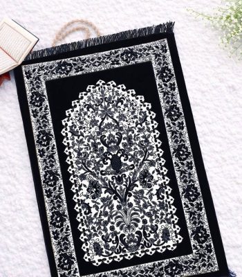 سجادة صلاة رغوية باللون الأسود بحشوة الميموري فوم بخامة المخمل الناعمة